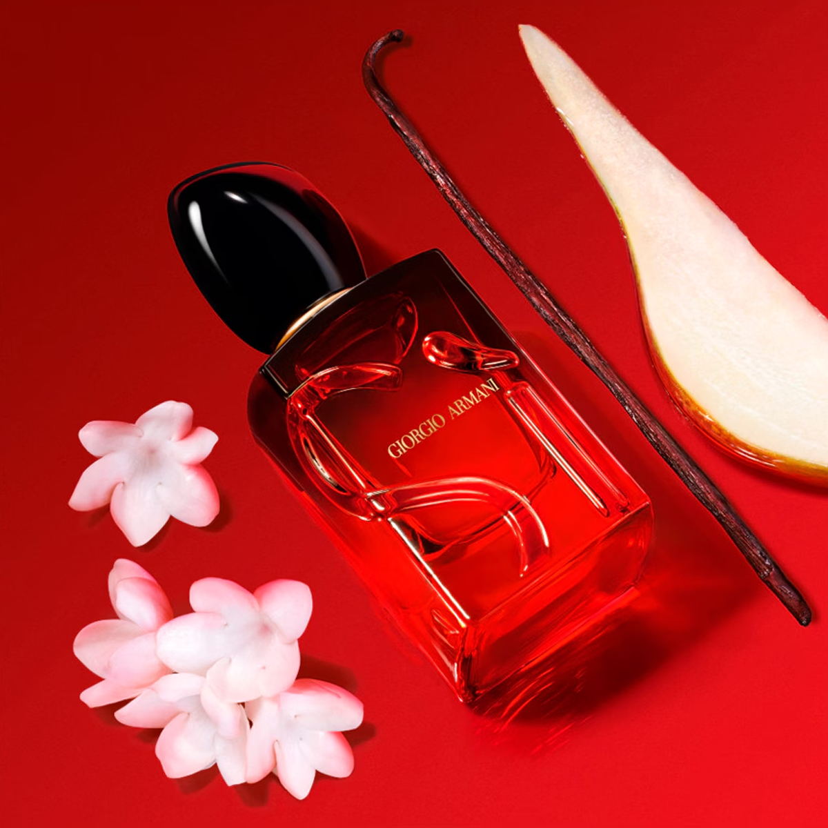 Giorgio Armani Sì Passione is a floral fruity fragrance with notes of pear, black currant, and pink pepper at the top; rose, jasmine, and heliotrope in the heart; and vanilla, cedarwood, patchouli, and amberwood in the base. It is designed to be a vibrant and passionate scent, with the fruit and spice of the opening giving way to a rich floral heart and a warm, woody finish.